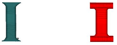 Look at the two capital I’s pictured. The version on the left is Goudy Bold. On the right is Brantford. With the left version, the serif is created by increasing the column width to create longer stitches. The right requires sewing separate segments for the serifs. Goudy Bold is the better choice for small lettering, whereas Brantford is the choice for larger lettering. Think about this when evaluating a font for different size applications.