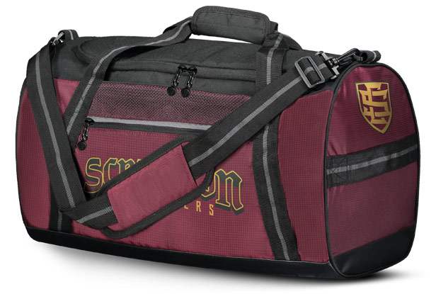 This duffel bag (229431) has everything a gym rat would want: U-shaped zippered main compartment, front pocket with organizer and key hook, zippered shoe compartment and padded carry handle; augustasportswear.com
