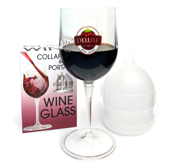 Users can enjoy a nice glass of pinot on the beach or by the pool without concern of breakage with this portable deluxe wine glass (PWG-D). The stem detaches from the glass and stores in the bell of the cup via magnet. It also comes with a hard-shell plastic carrying case for easy travel. Perfect for winery gift shops.
