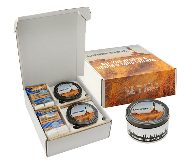 Hikers and campers will appreciate the Trailblazer kit that includes gourmet snacks, like chocolate bourbon cookies, rosemary garlic almonds and a mixed-nut bar, plus a notepad, stashlight, bottle opener, multi-tool and wood plate, all in an imprinted gift box.