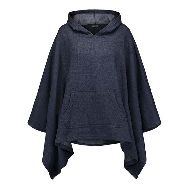 Game days and movie nights are ideal for getting cozy in this fleece poncho (W17125). It’s made of 55% cotton/45% polyester fleece and has a hood and kangaroo pocket.