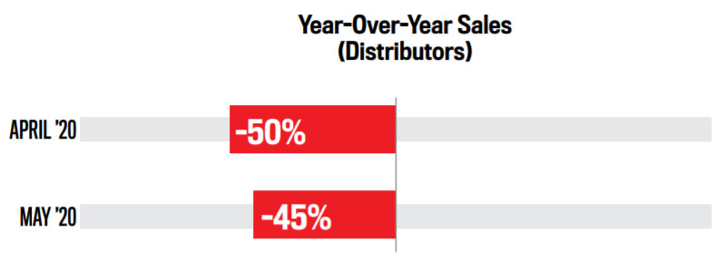 ASI research shows that distributors and suppliers, both Top 40 and otherwise, feel that industry sales could retreat on average by about 30% in 2020 compared to 2019.
