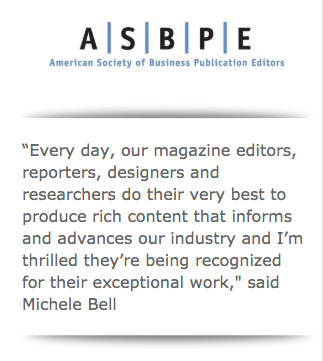 “Every day, our magazine editors, reporters, designers and researchers do their very best to produce rich content that informs and advances our industry and I’m thrilled they’re being recognized for their exceptional work across so many platforms,” said Michele Bell (@ASI_MBell), who oversees ASI’s editorial team.
