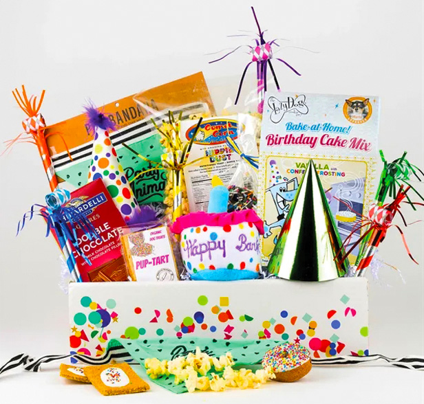 Celebrate furry friends with a gift basket for dogs and their owners, ideal for birthday parties, adoption parties and shelter events. Includes treats and accessories.