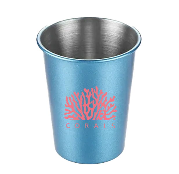 These single-walled cups are made of high-quality food-grade stainless steel, with a varnished outside and polished inside. Ideal for camping, daycares and classrooms. Available in five colors.